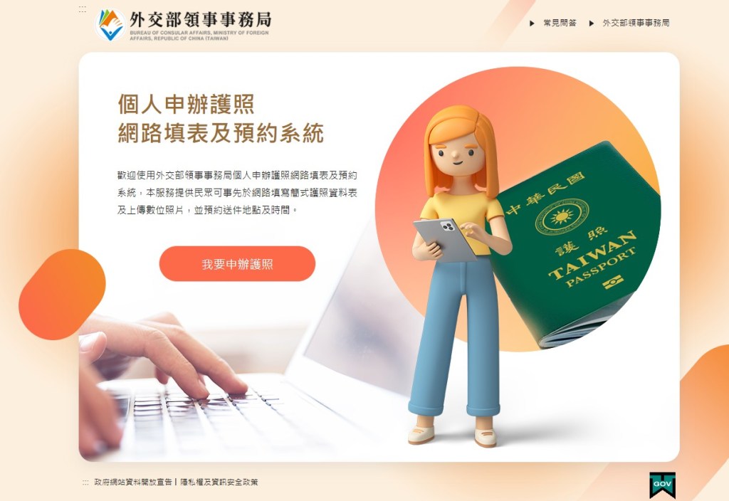 (連結點我👉個人申辦護照網路填表及預約系統)